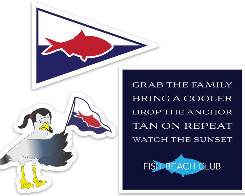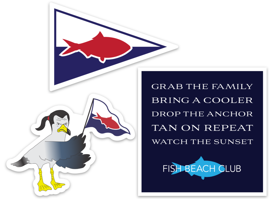Decorate your Boat Gear / Cooler with the Fish Beach Club sticker pack.